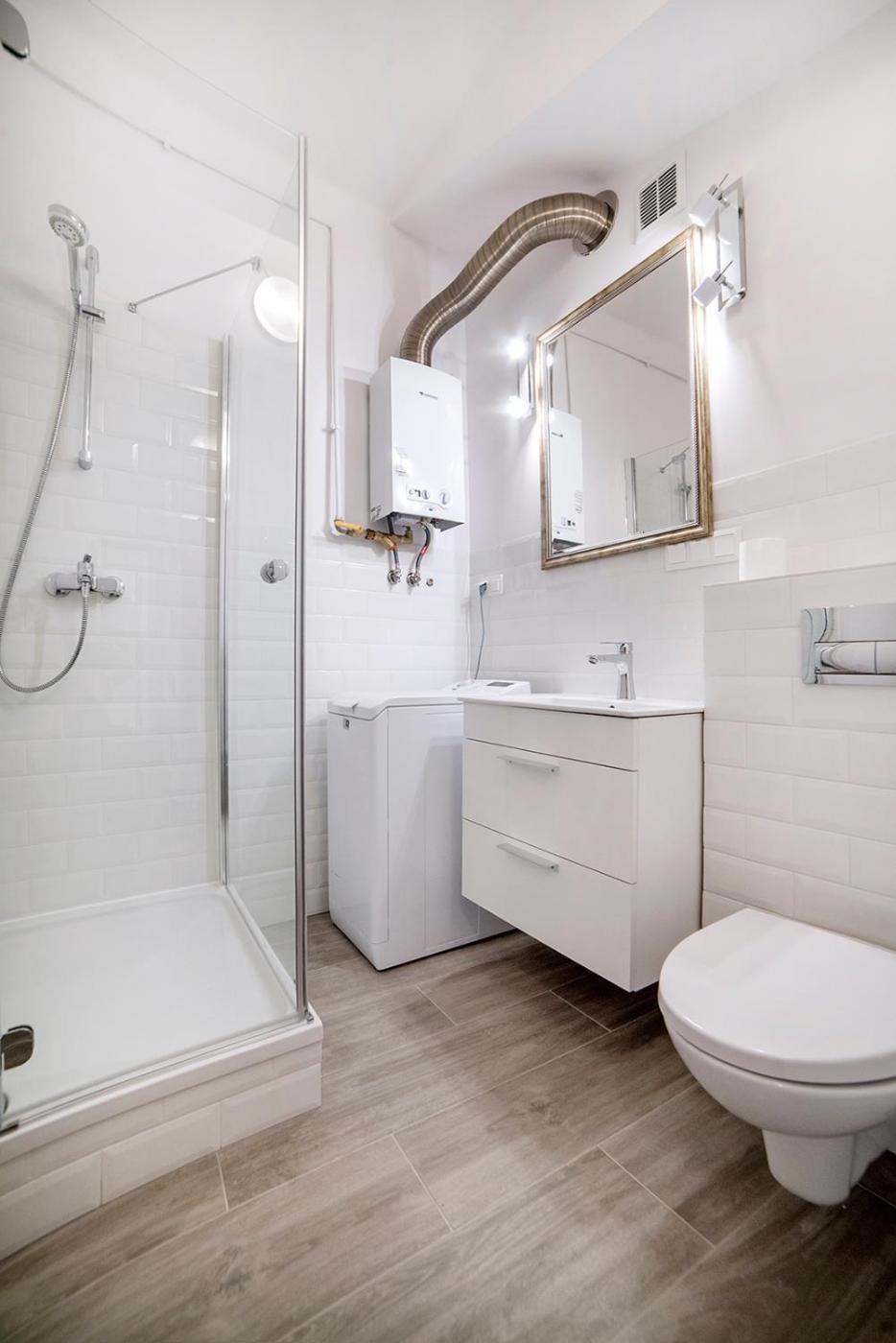 Apartament. This apartment comprises 1 living room, 1 separate bedroom and 1 bathroom with a shower and a hairdryer. Meals can be prepared in the well-fitted kitchen, which comes with a refrigerator, kitchenware, an oven and a microwave. The apartment provides a washing machine, a tea and coffee maker, a wardrobe, a flat-screen TV with satellite channels, as well as city views. The unit offers 3 beds. Apartament - 5 osobowy. Powierzchnia pokoju ok.: 50 mkw.